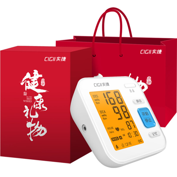 实捷 电子血压计(上臂式) 三色背光带电源 B02健康蓝-礼盒套装 - 亿家老小商城