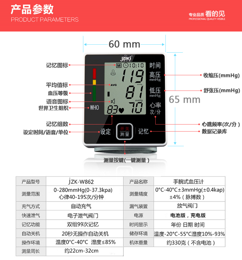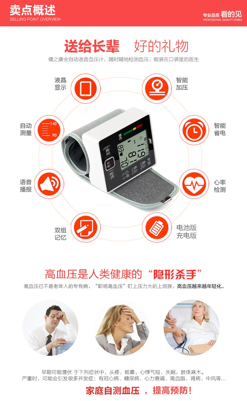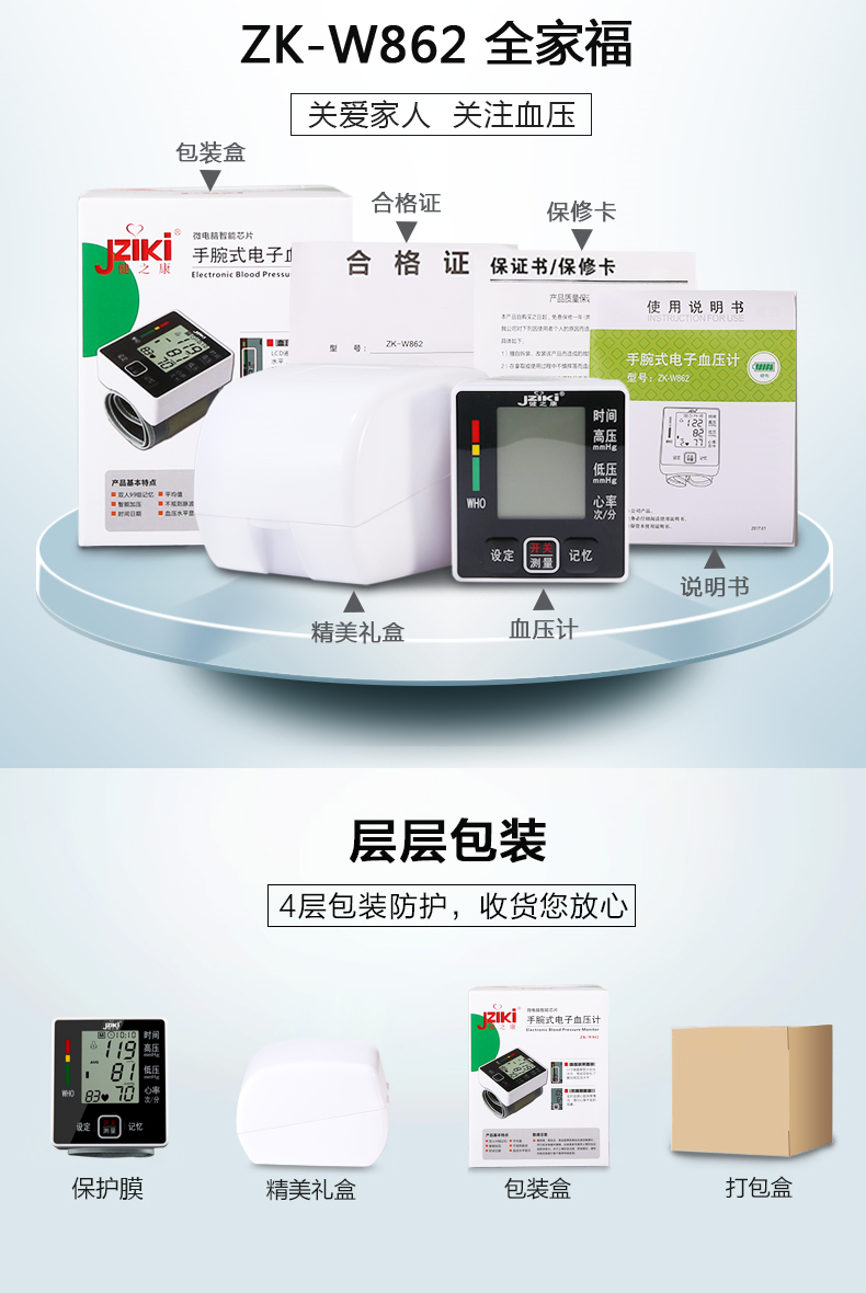 健之康 语音全自动电子血压计(腕式)ZK-W862