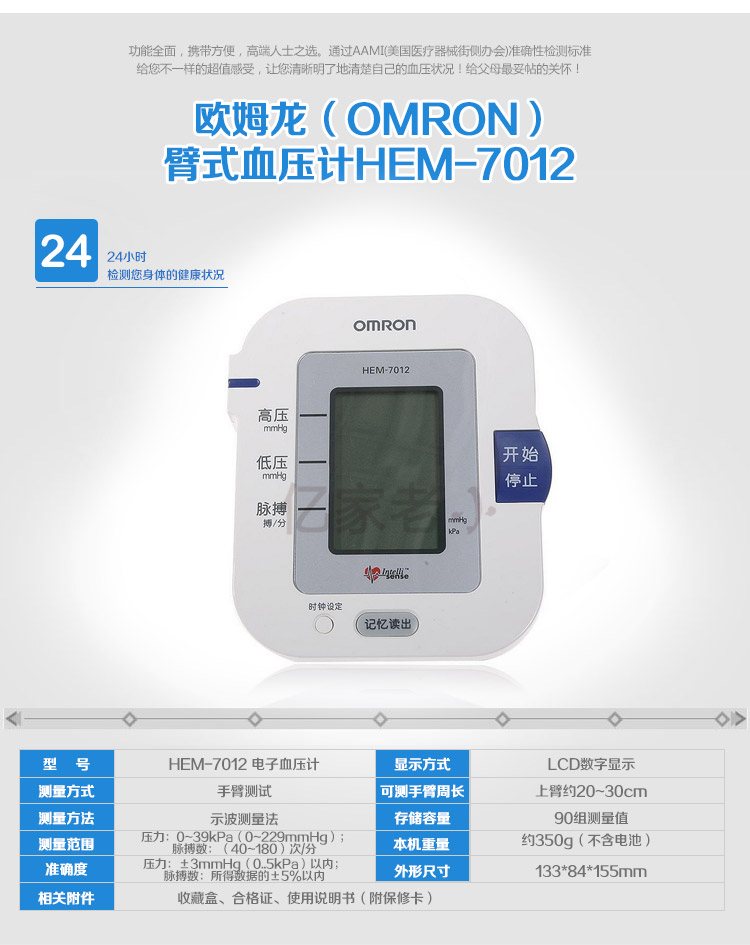 【商品名称】:欧姆龙(OMRON )血压计HEM-7012