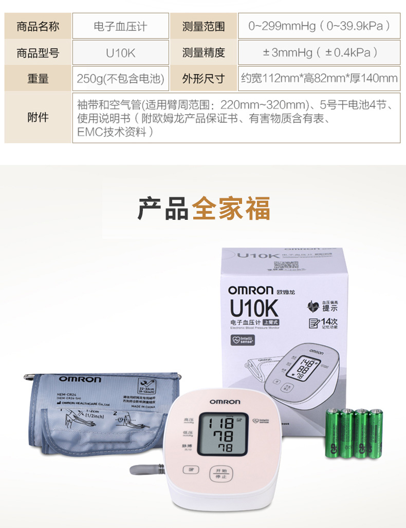 欧姆龙(OMRON)家用电子血压计(臂式) U10K