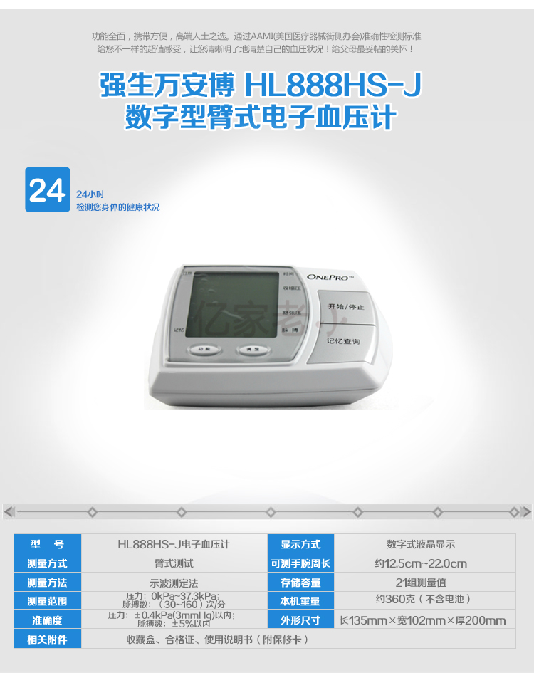 【商品名称】:强生万安博电子血压计强生HL888HS-J