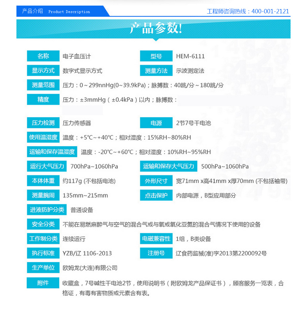 欧姆龙HEM-6111(Omron)腕式电子血压计