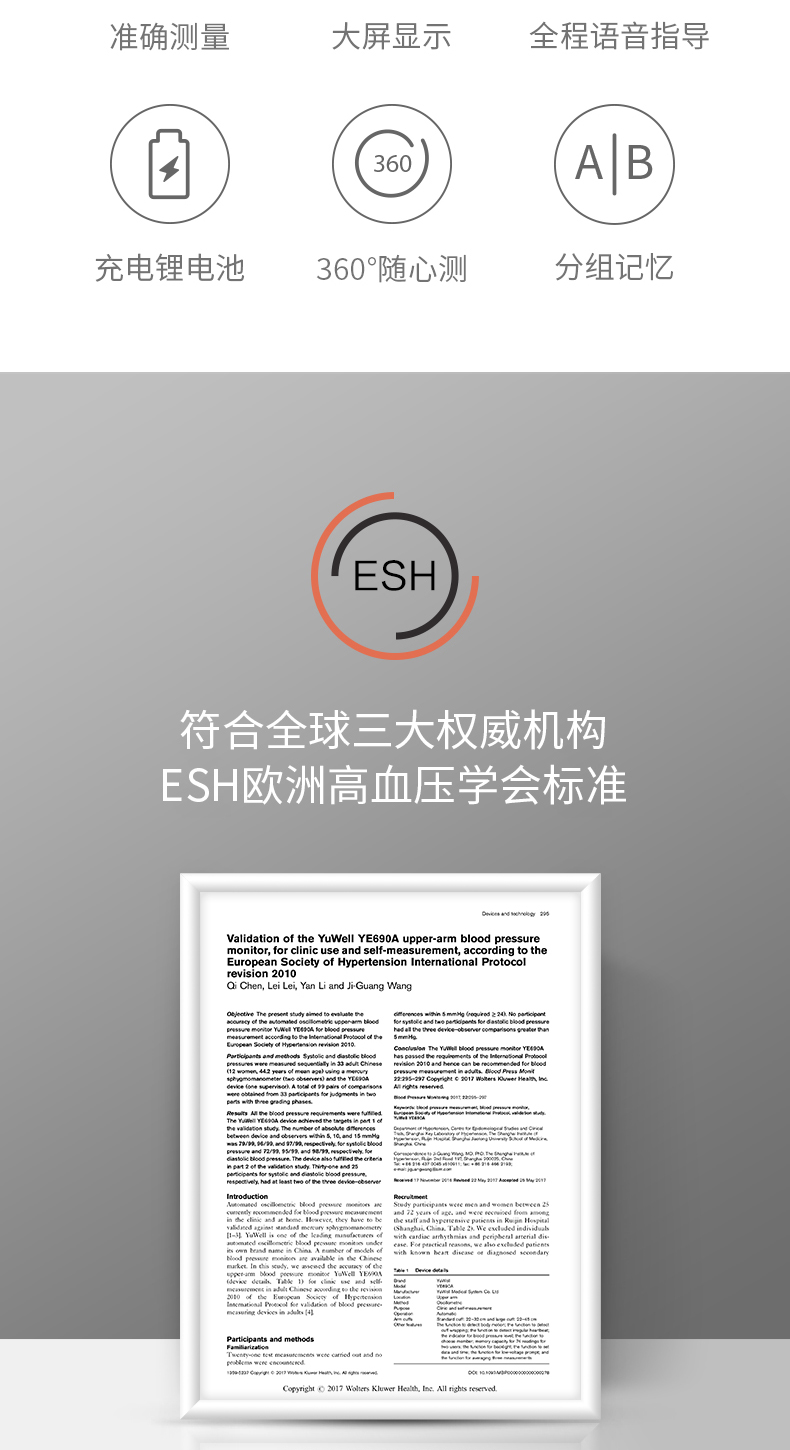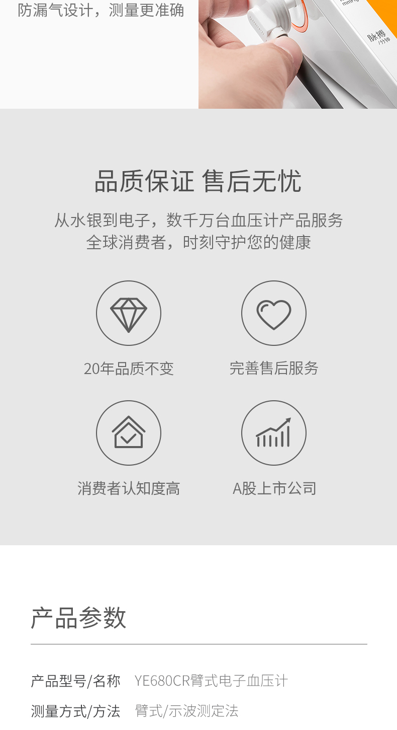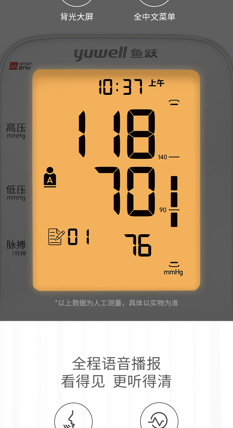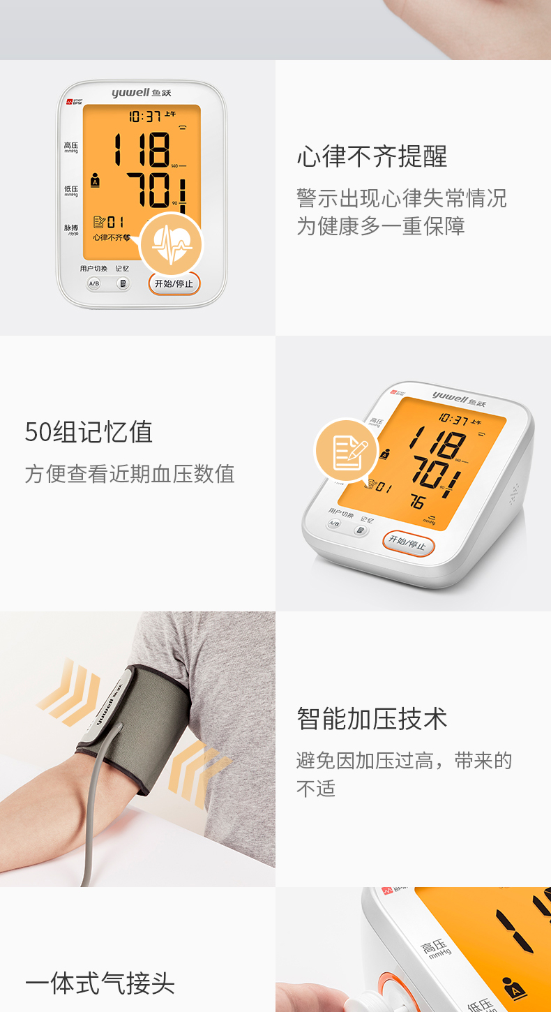 鱼跃 YUWELL 家用全自动电子血压计(上臂式)YE680CR