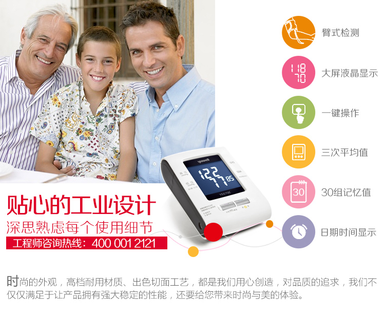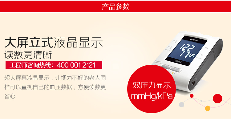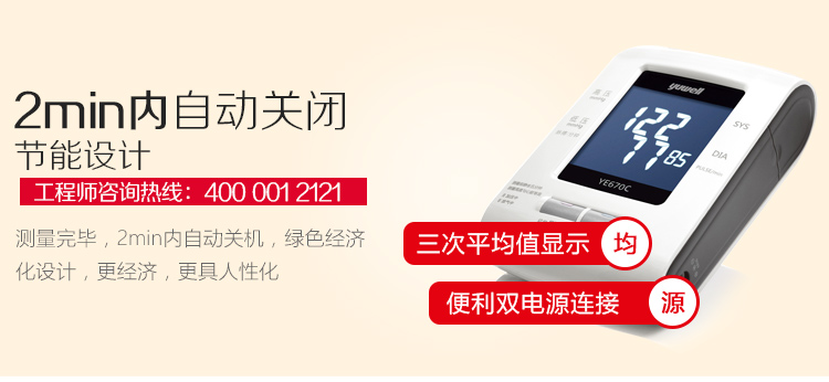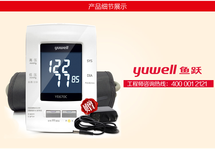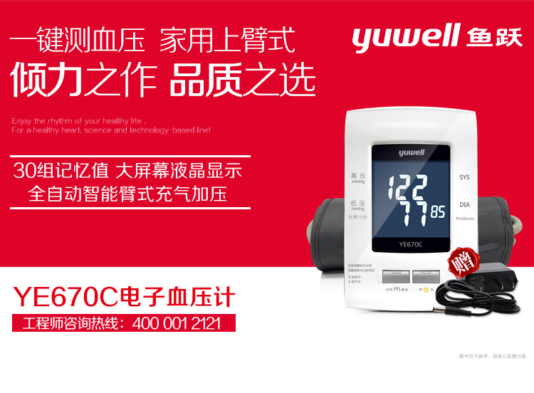 鱼跃电子血压计YE670C 家用臂式血压仪 全自动血压仪器