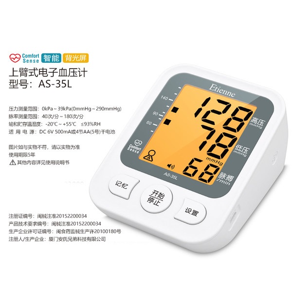 艾蒂安 电子血压计(上臂式)全自动测量背光大屏 AS-35L