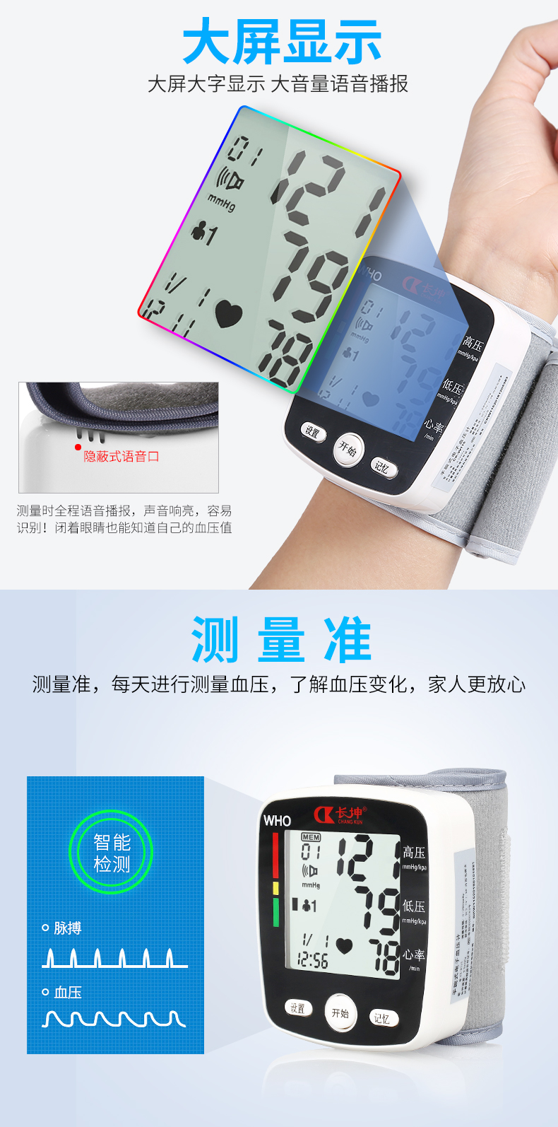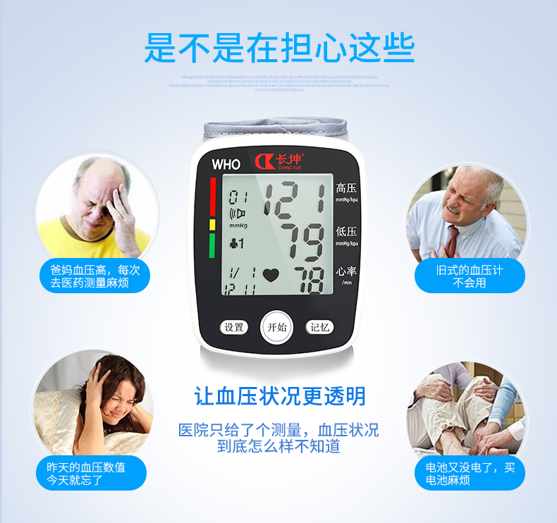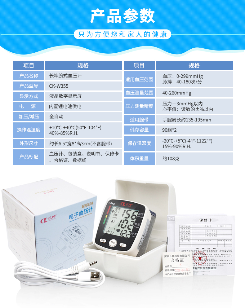 长坤 电子血压计(手腕式) 语音播报款CK-W355