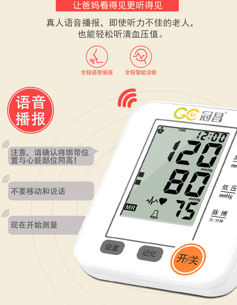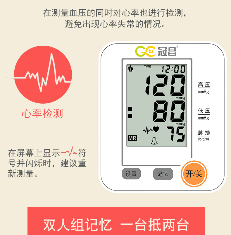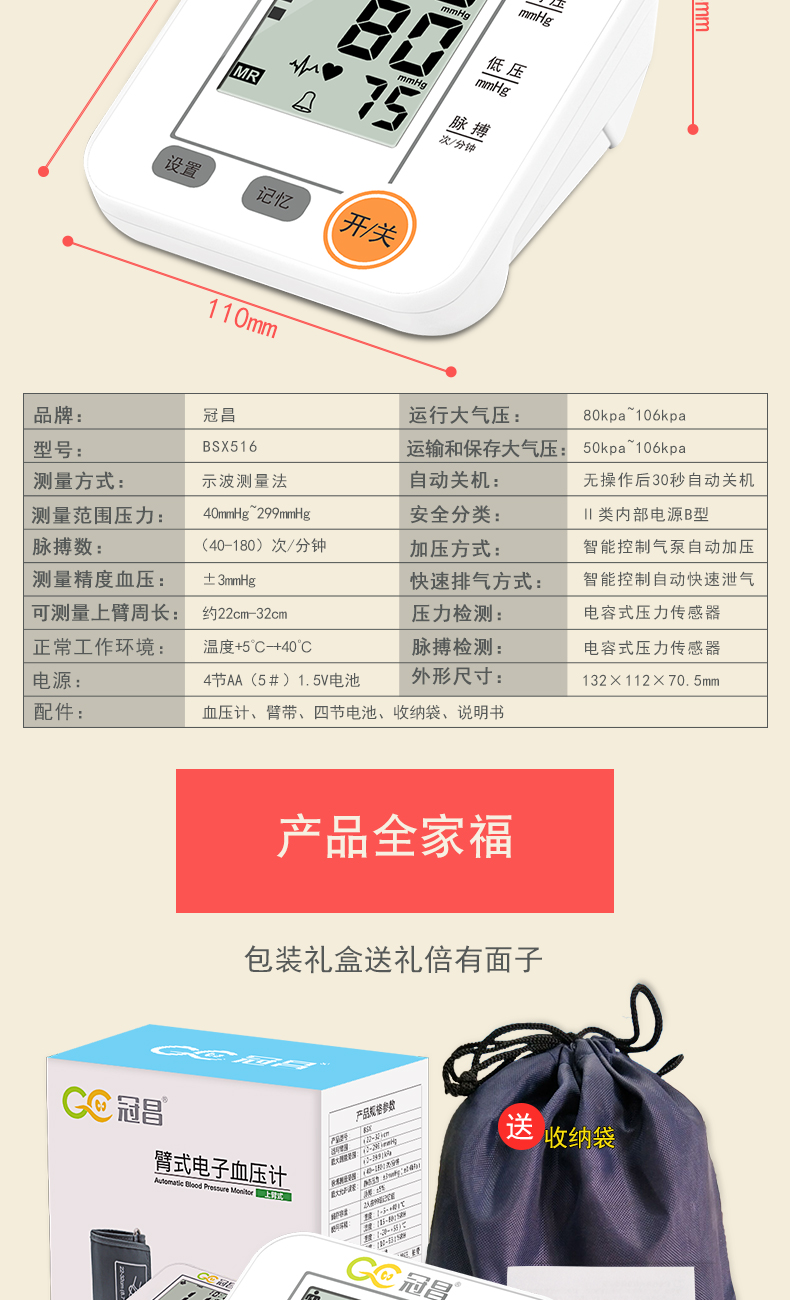 冠昌 家用全自动血压计(上臂式) BSX516
