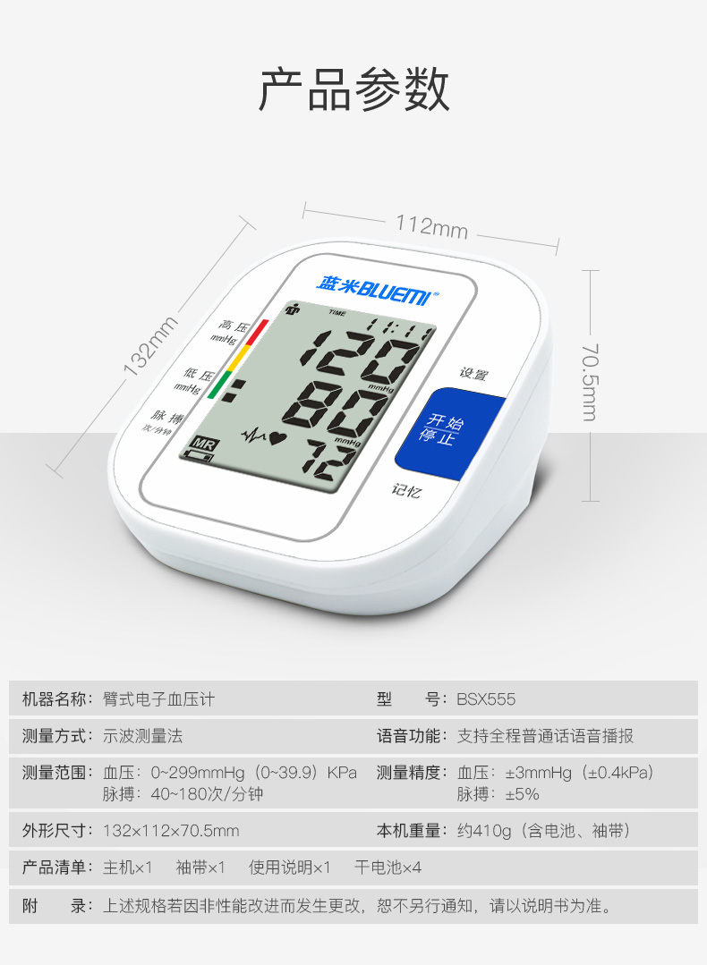 蓝米 家用电子血压计(上臂式) BSX-555