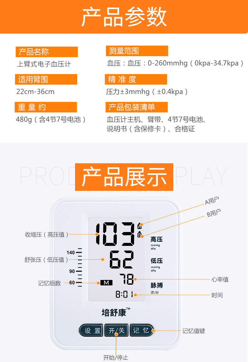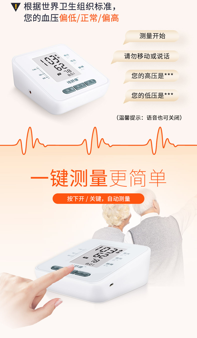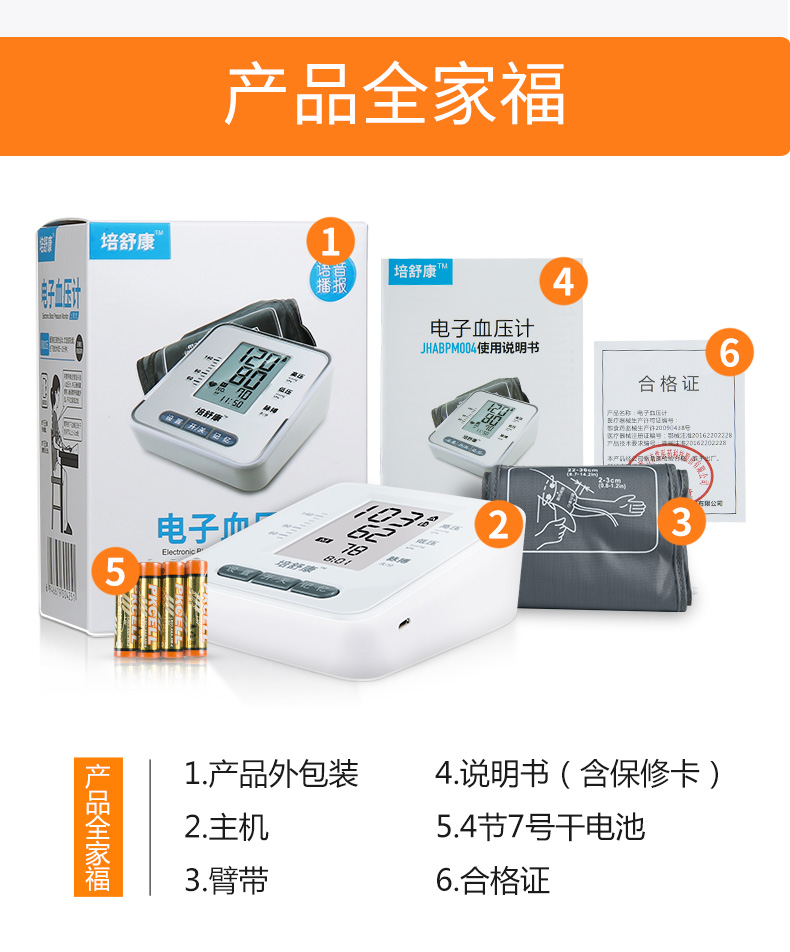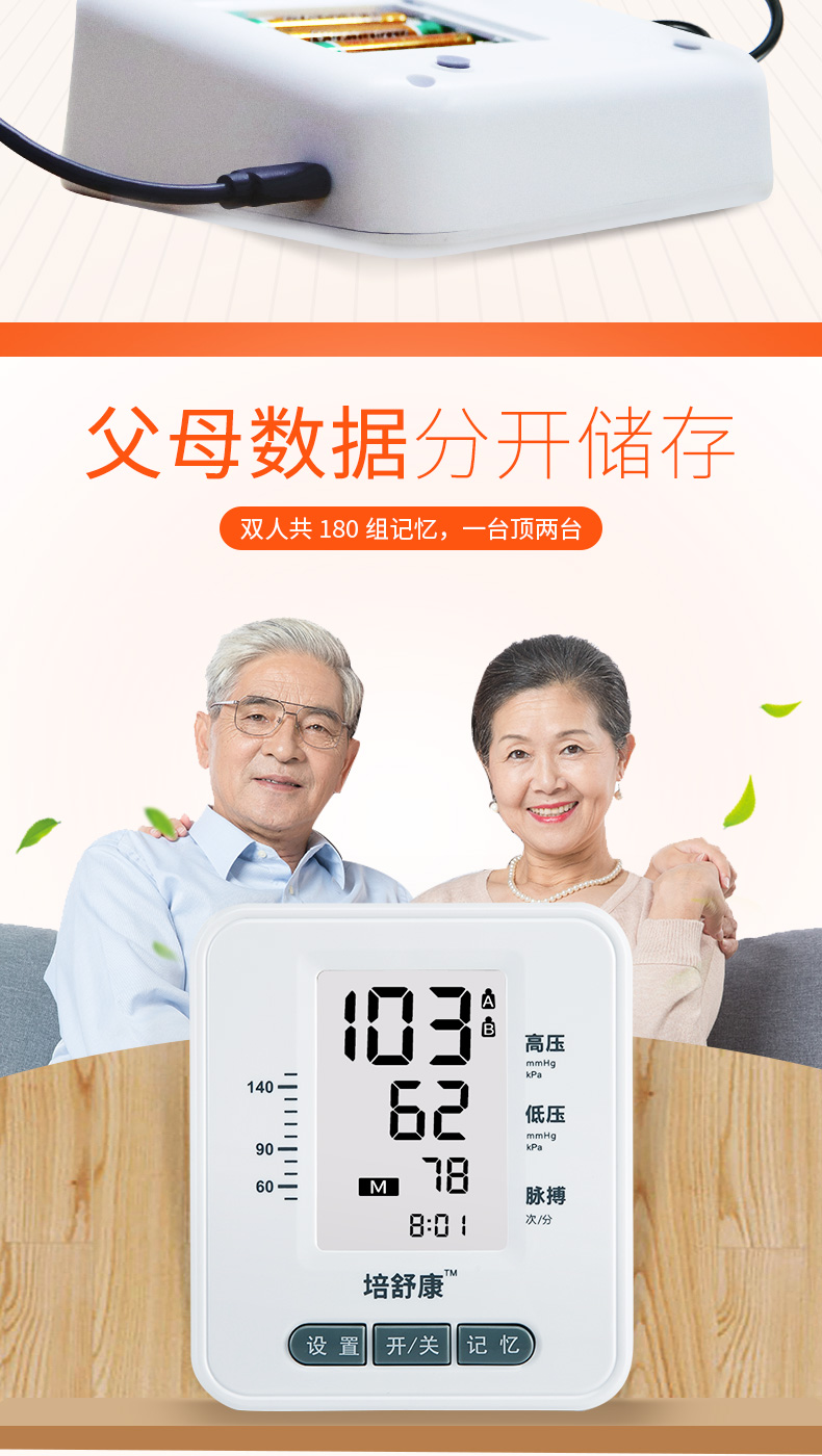 培舒康 家用老人医用上臂式全自动电子血压计JHABPM001