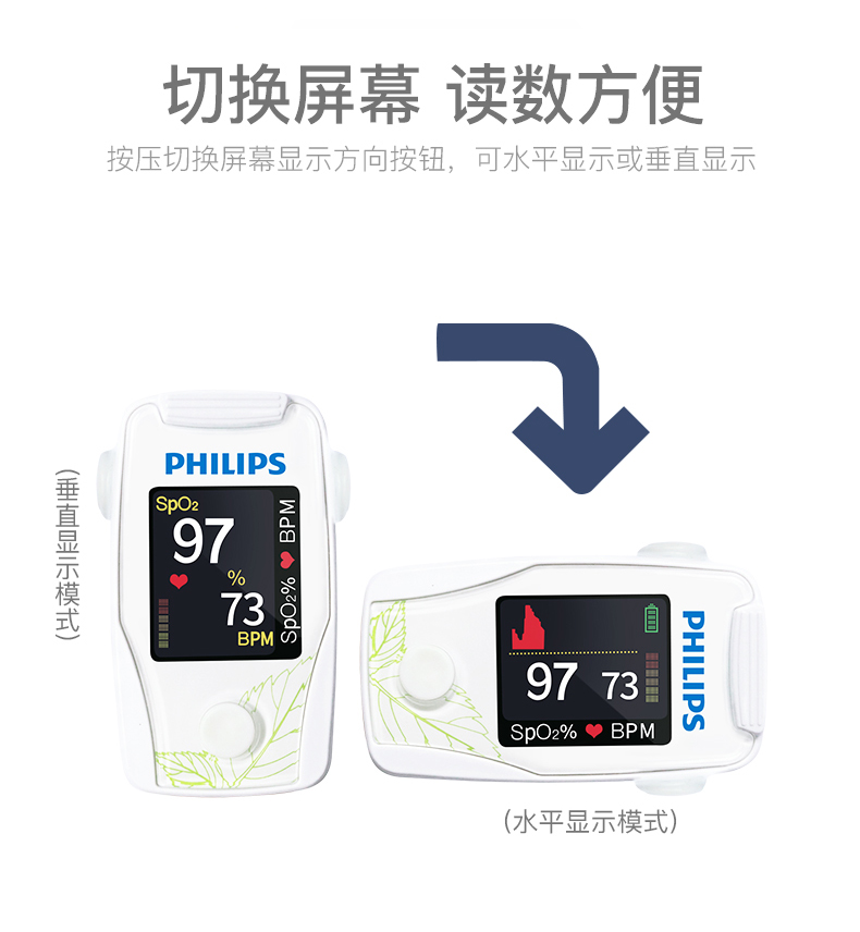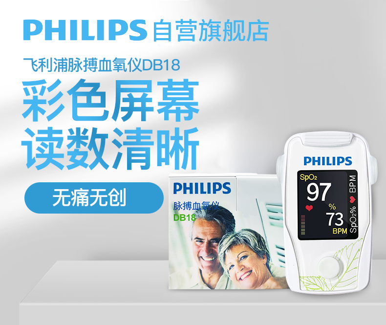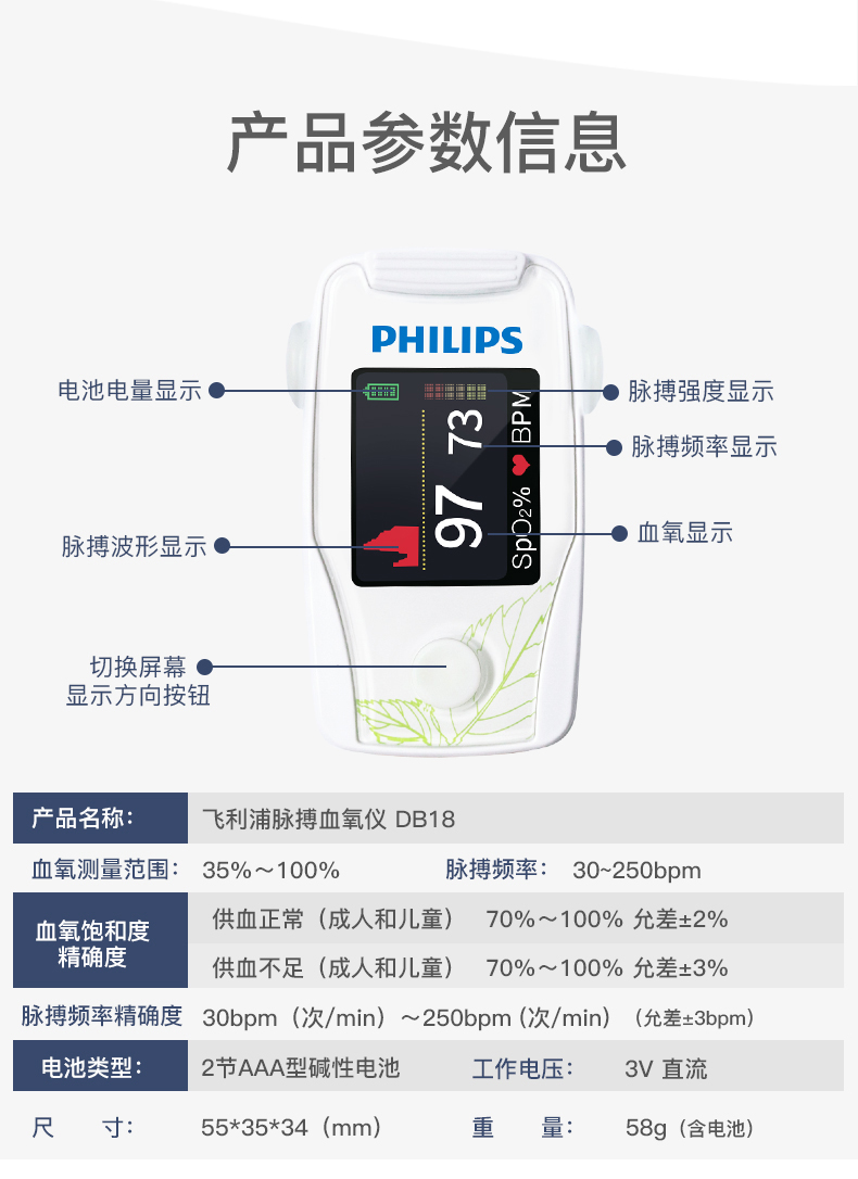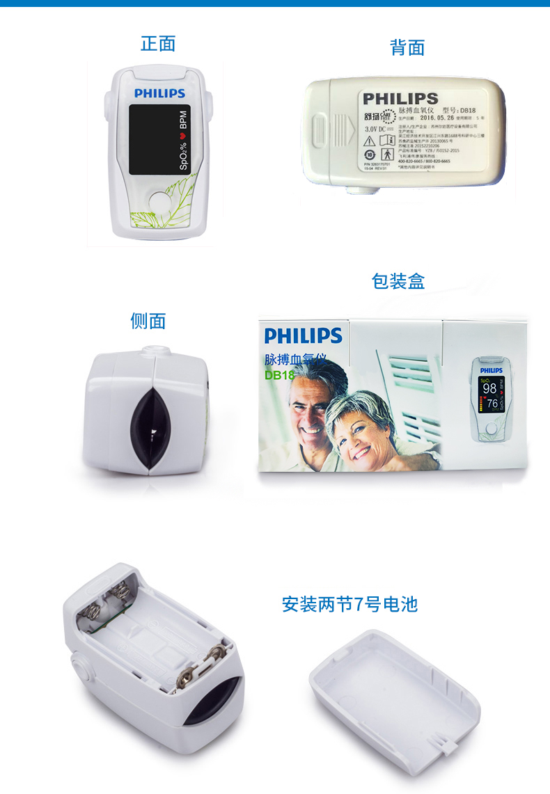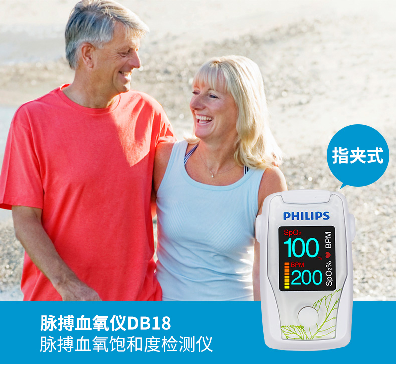飞利浦 指夹式脉搏血氧仪 血氧饱和度仪 双向显示(背光彩屏)DB18