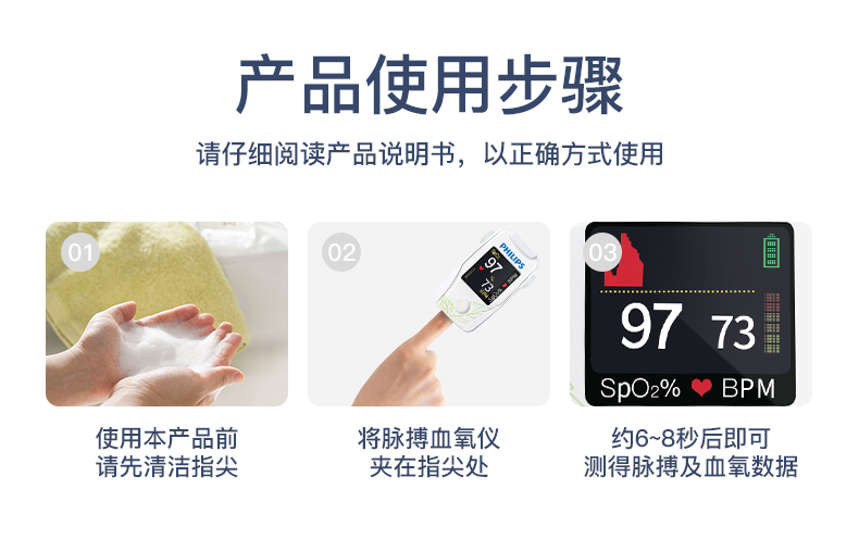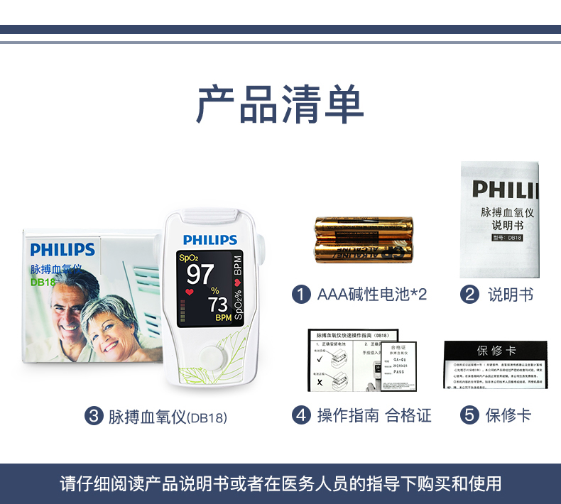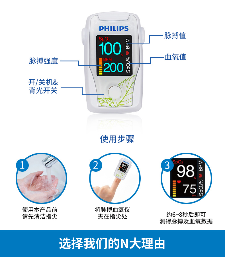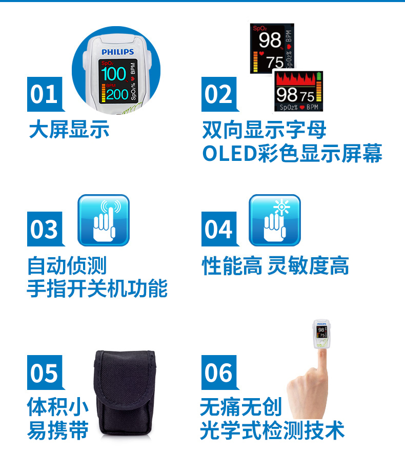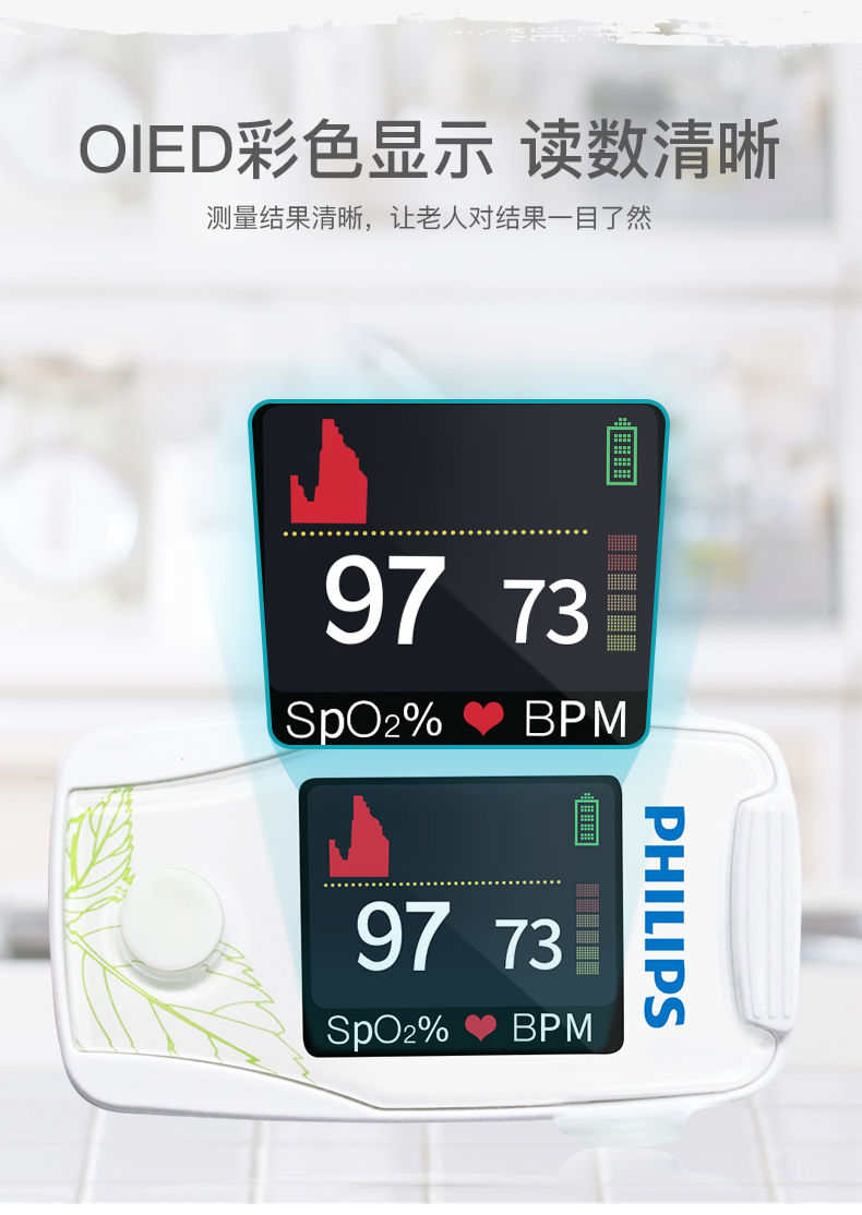 飞利浦 指夹式脉搏血氧仪 血氧饱和度仪 双向显示(背光彩屏)DB18