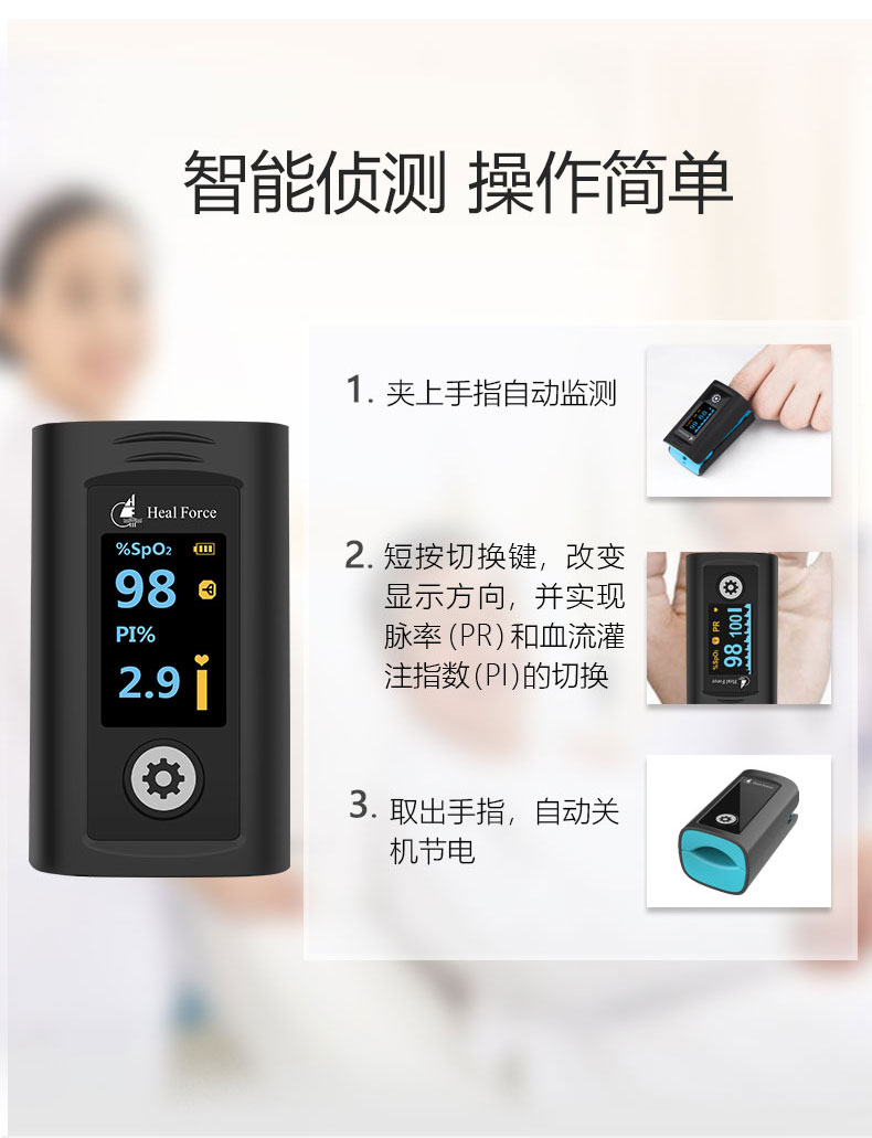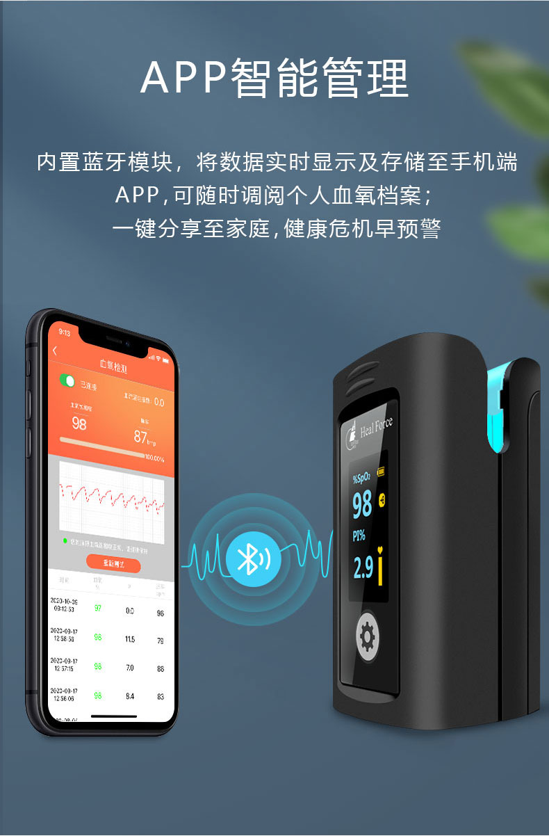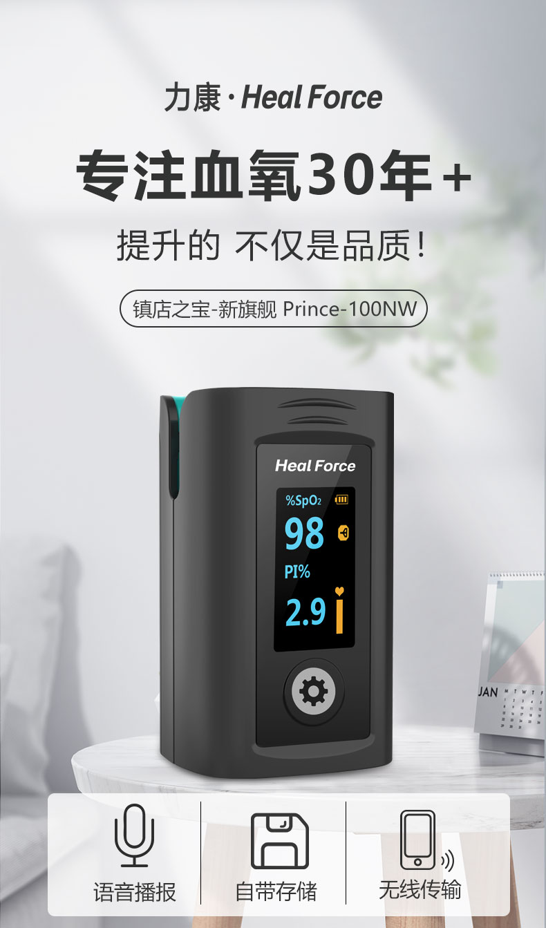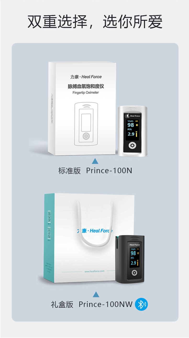力康 指夹式血氧仪蓝牙新品血氧饱和度检测仪APP云端服务智能脉搏心率监测仪 Prince-100NW