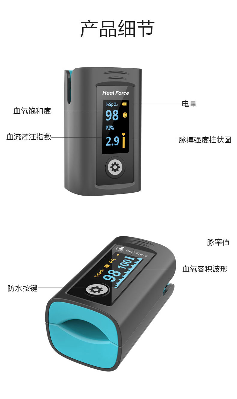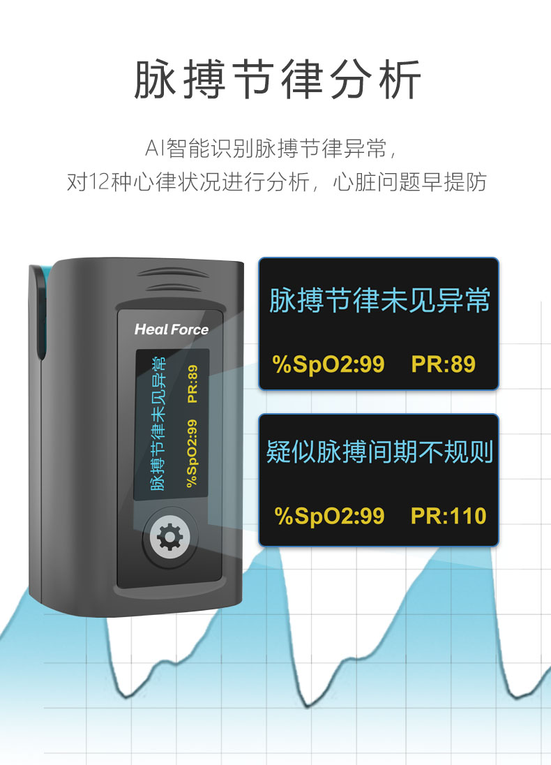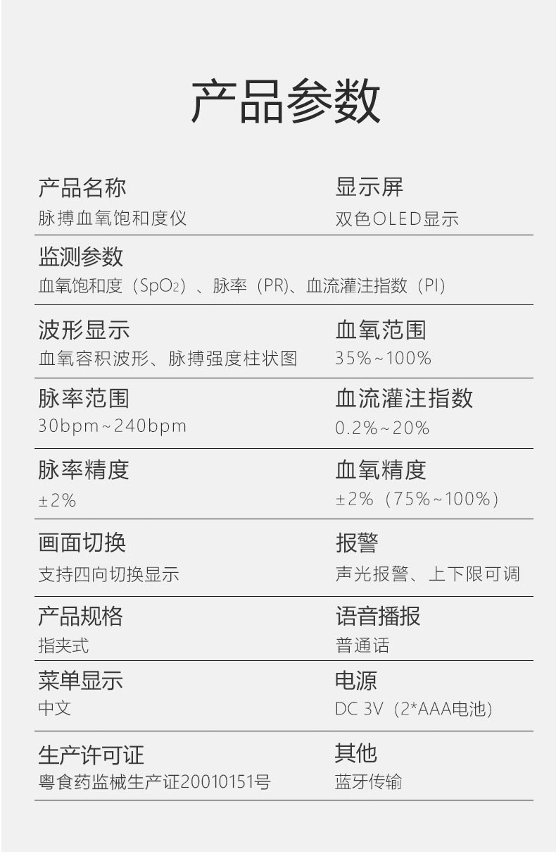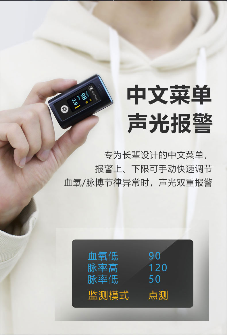 力康 指夹式血氧仪蓝牙新品血氧饱和度检测仪APP云端服务智能脉搏心率监测仪 Prince-100NW