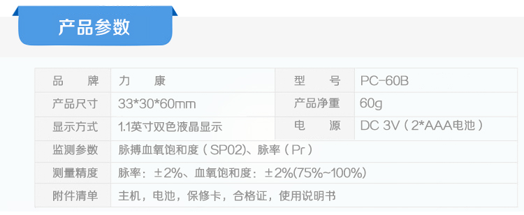 力康血氧仪 PC-60B 指夹式脉搏血氧饱和度仪