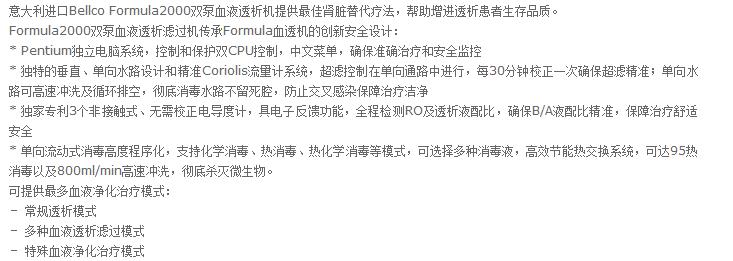 意大利Bellco公司成立于1972年,早起以研发生产血液透析机为主,在意大利境内设有三个医学生物工厂和一个研发中心和实验中心,经过全体研发团队的努力,现以及创新的治疗模式使Bellco产品成为欧洲血液净化产品领导产品之一,2011年与全球国际知名企业法拉利汽车集团建立了长期战略合作关系。