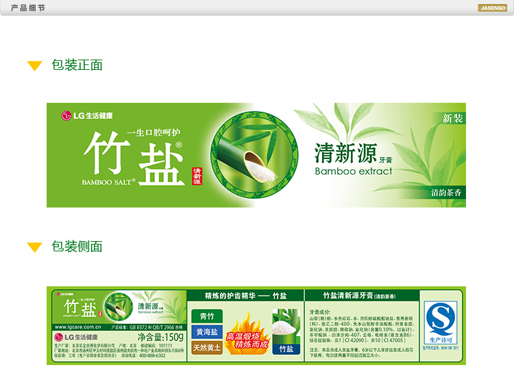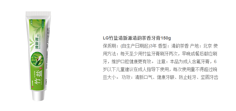 LG竹盐 清新源 牙膏(清韵茶香) 150g