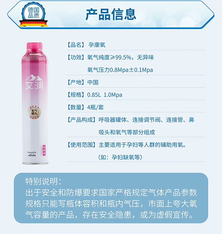 艾润 氧气瓶(鼻吸式)孕康氧 6瓶礼盒装 大瓶