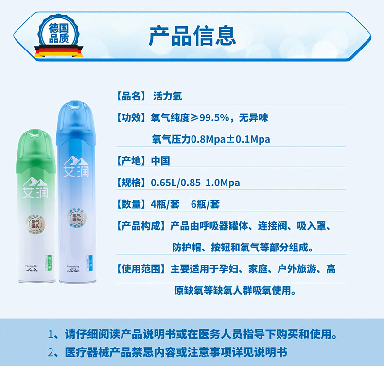 艾润 氧气瓶(面罩式)户外氧 4瓶装