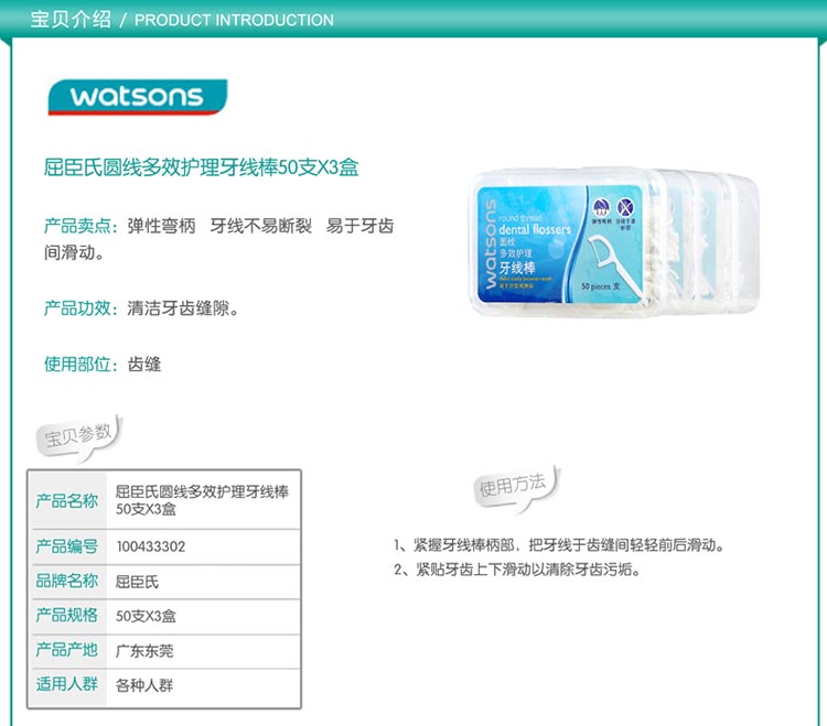 Watsons 屈臣氏圆线多效护理牙线棒50支X3盒