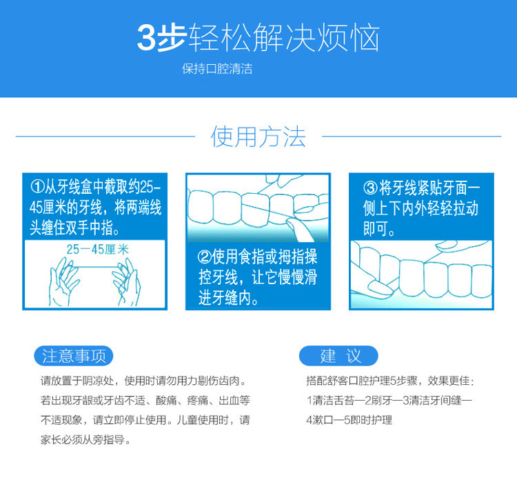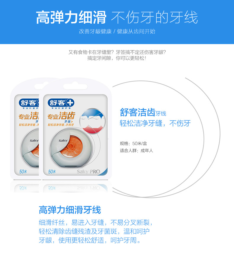 舒客舒克扁线牙线 纤细线洁牙线清洁牙缝50米*3盒