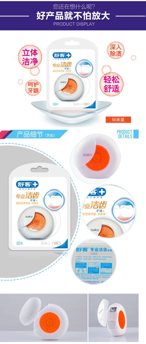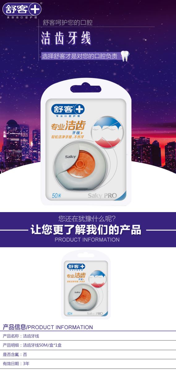 舒客 舒克 洁齿牙线50m一盒