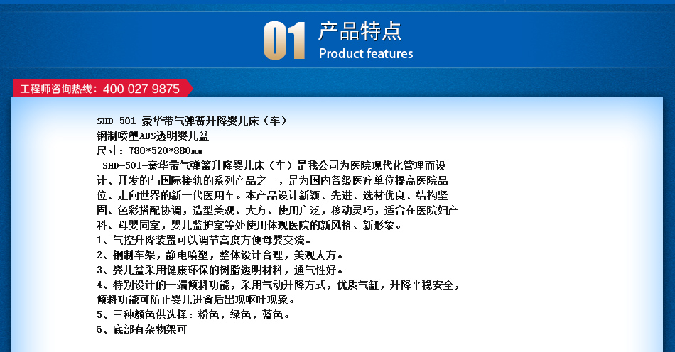 盛德SHD-501-豪华气带弹簧升降婴儿床(车)