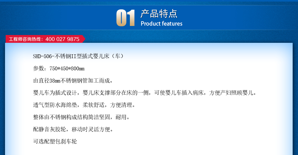 盛德SHD-506不锈钢II型插式婴儿床(车)
