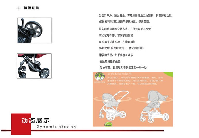 1、前向和后向两种安装方式,方便您与幼儿交流。 2、五点式带。 3、宽敞的购物篮。 4、把手可调节前后。 5、前轮可锁定。 6、一体式同步刹车。 7、可分离式防水车棚。 8、布套可拆卸。 9、防刺轮胎。 10、适用于从出生-15kg。 11、Click&Go系统,一步安装BABY-SAFE plus SHR。 12、把手高度可调节。 13、一脚刹车。 14、柔软的手柄。 15、舒适的肩垫和坐垫。 16、爱心车窗,让您随时看到宝宝的一举一动。 |
