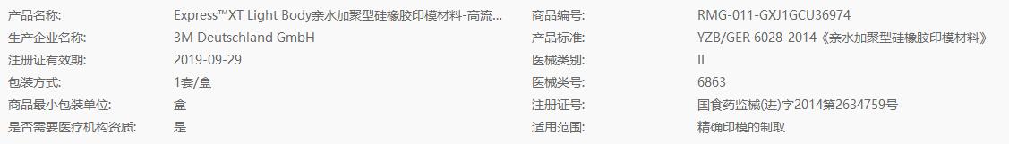 3M ESPE Express™XT Light Body亲水加聚型硅橡胶印模材料 高流体常规固化型补充装-基质/催化剂50mL*2/盒 GXJ1GCU369