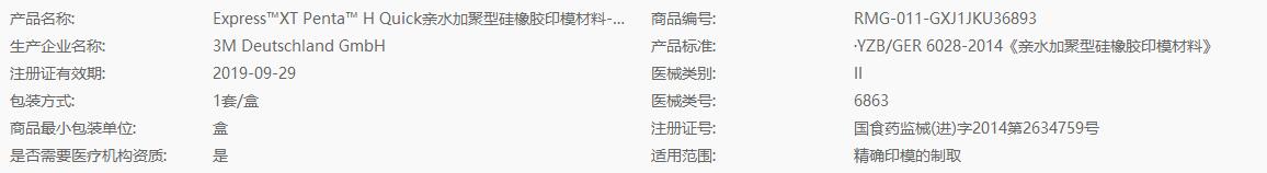 3M ESPE Express™XT Penta™ H Quick亲水加聚型硅橡胶印模材料 机混重体快速固化型型-基质300mL,催化剂60mL GXJ1JKU368