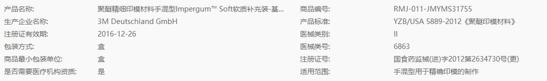 3M ESPE 聚醚精细印模材料手混型Impergum™ Soft软质补充装 基质240mL,催化剂30mL JMYMS31755