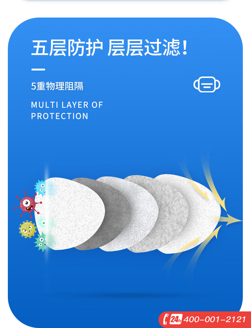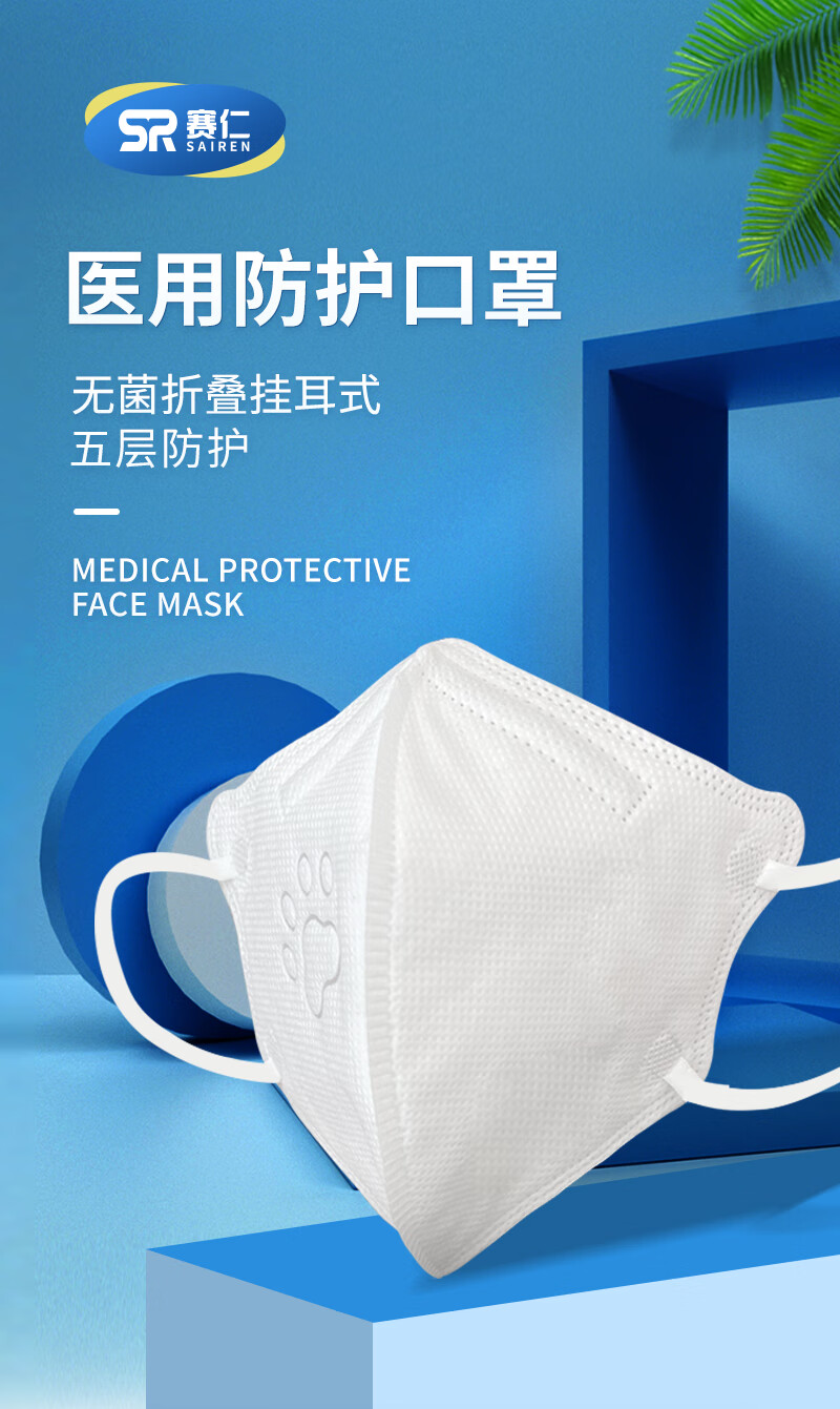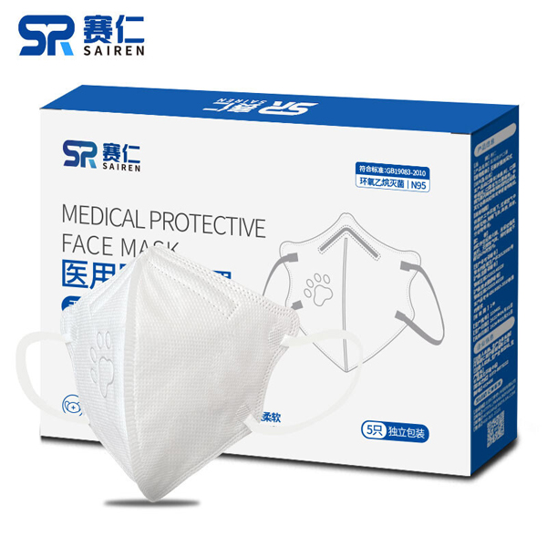 赛仁 N95医用口罩 五层防护 过滤效率≥95% 挂耳式 5片装(白色5层儿童款)