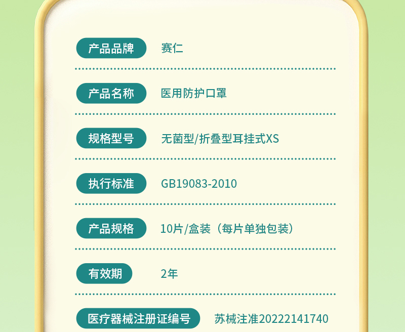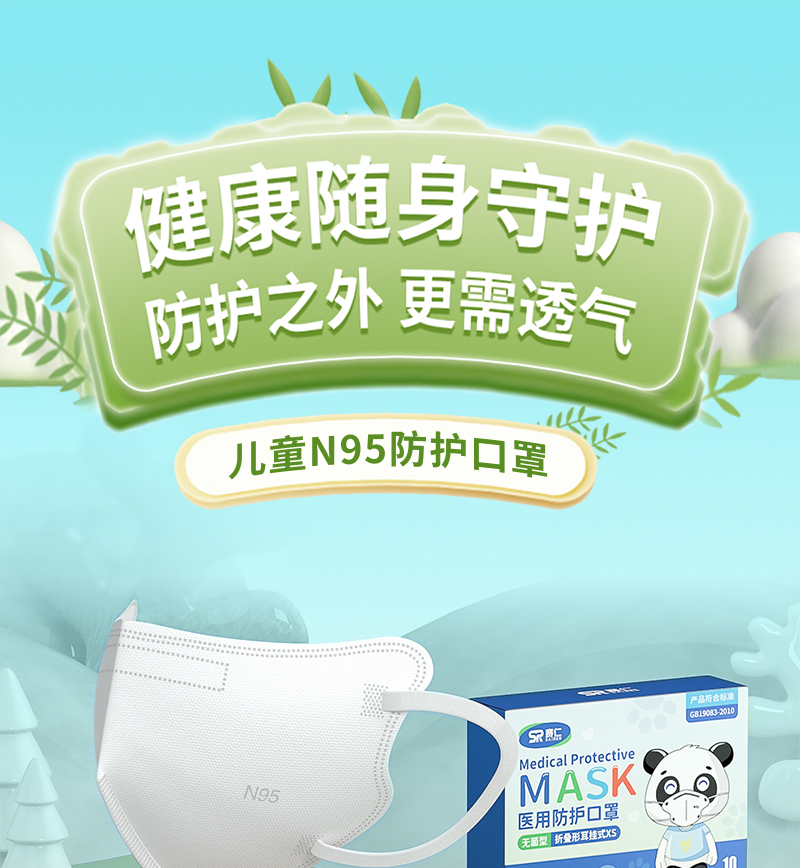 赛仁 医用防护口罩 折叠形耳挂式XS儿童款 N95口罩 10只/盒