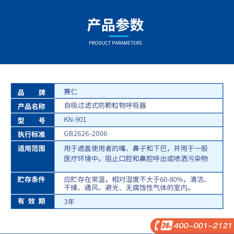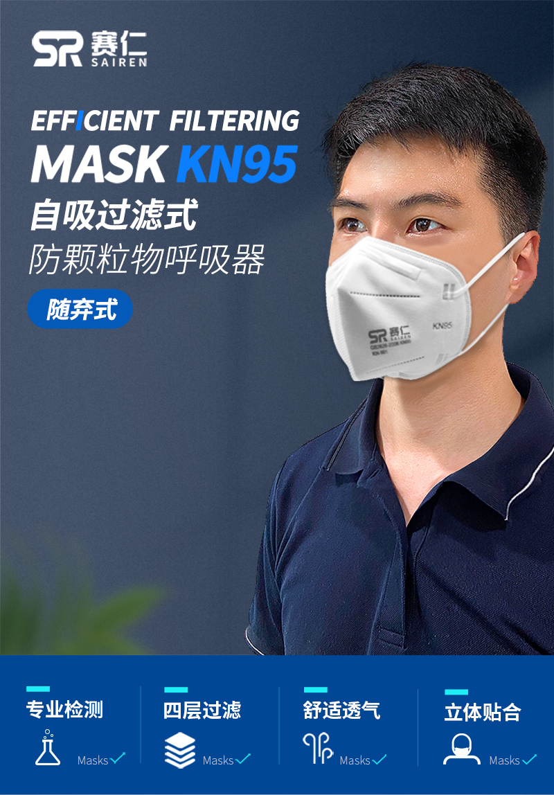 赛仁 KN95 高效过滤防护口罩 10只装 防粉尘防雾霾口罩