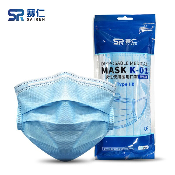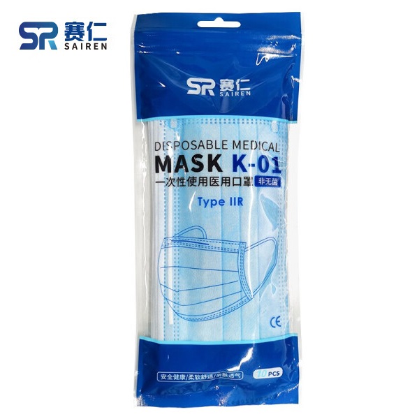 赛仁 一次性医用口罩 10片装 三层过滤 欧洲Type IIR标准 防风防尘 含熔喷布K-01