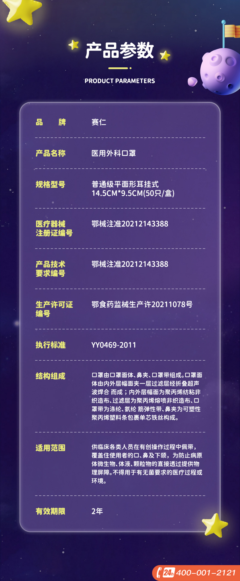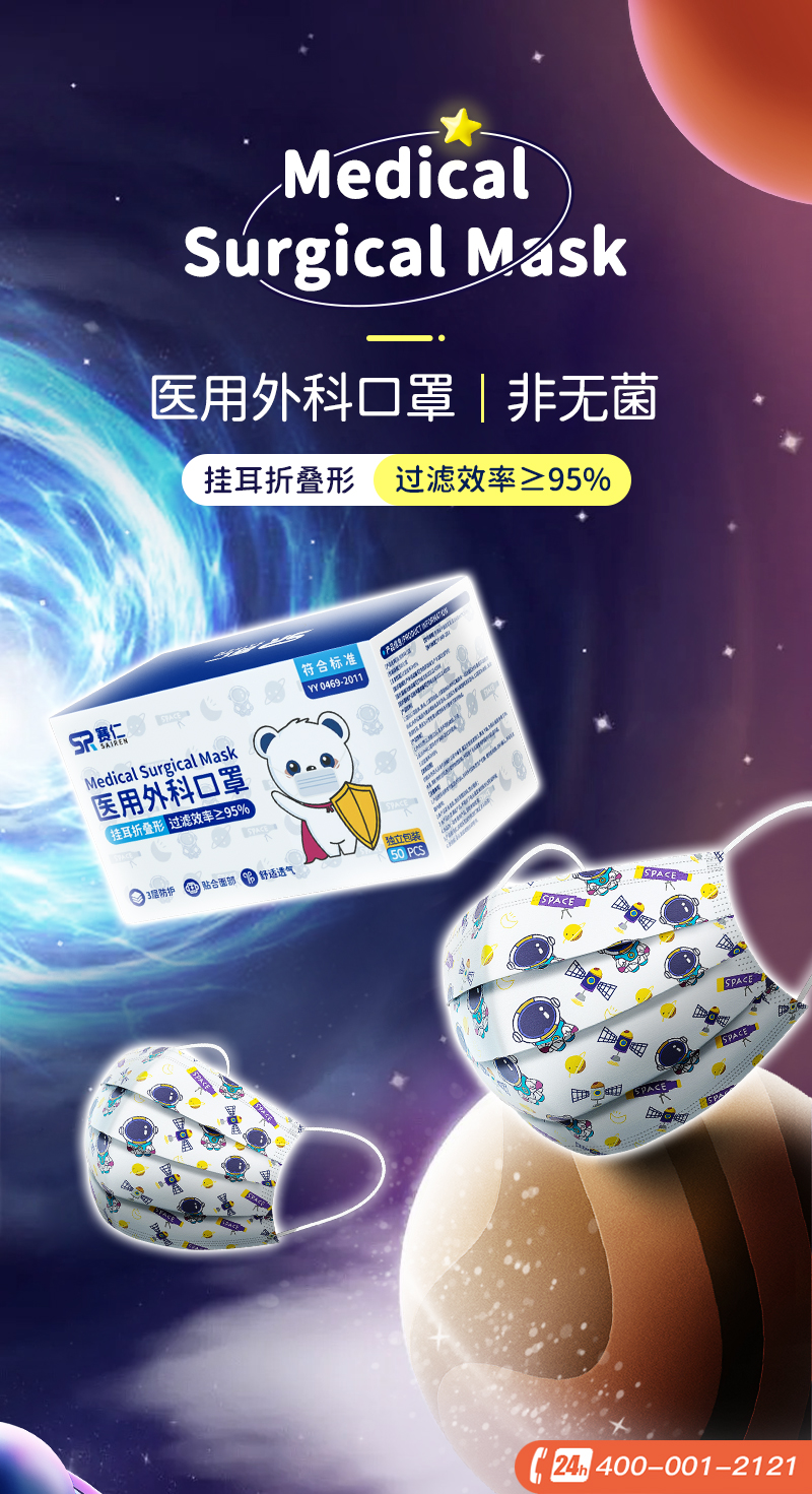赛仁 医用外科口罩 无菌型口罩 独立包装 50片装/盒 儿童外科(非无菌)