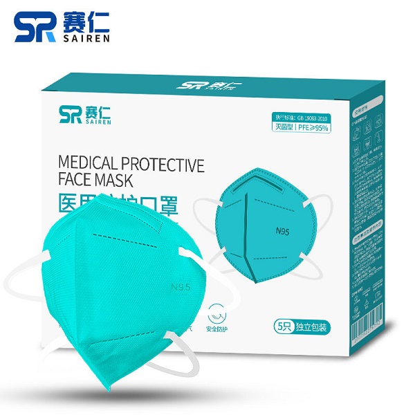 赛仁 N95医用防护口罩 头戴式 5层防护 无菌型独立装 5片装/盒