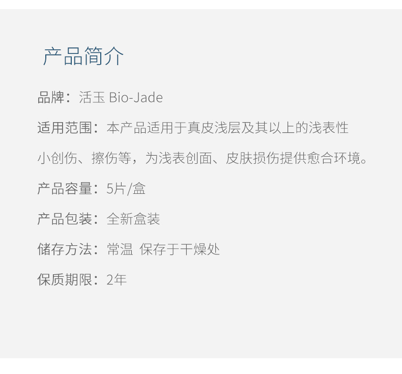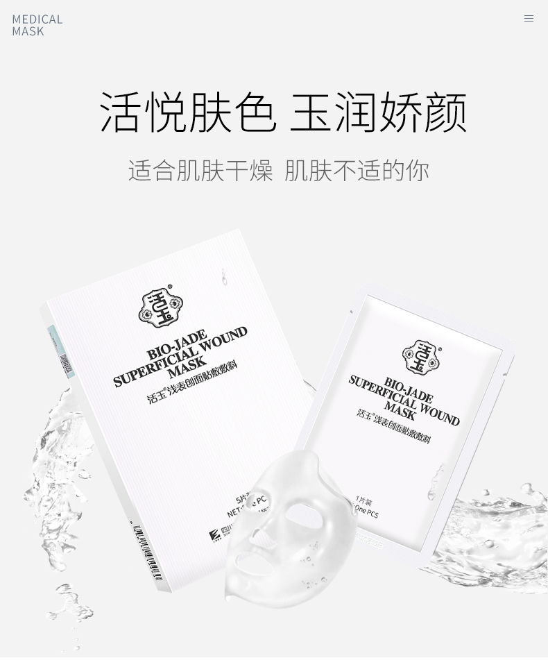 活玉医用面膜 浅表创面帖敷敷料(5片装) 适合干燥肌肤