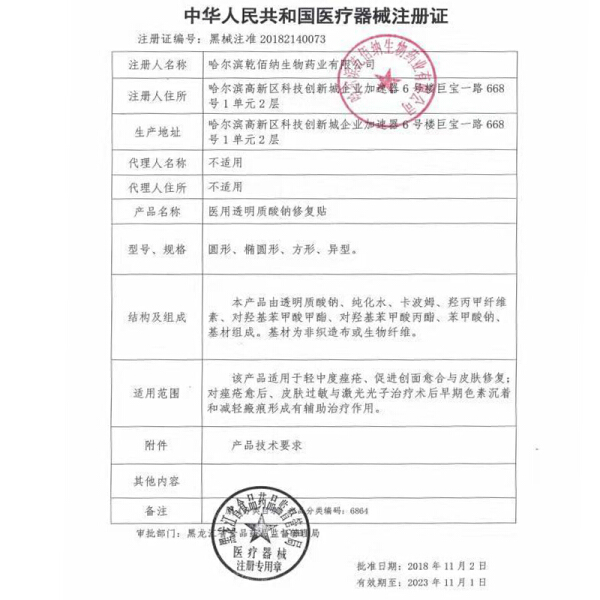 乾佰纳 医用面膜透明质酸钠修复贴 5贴/盒