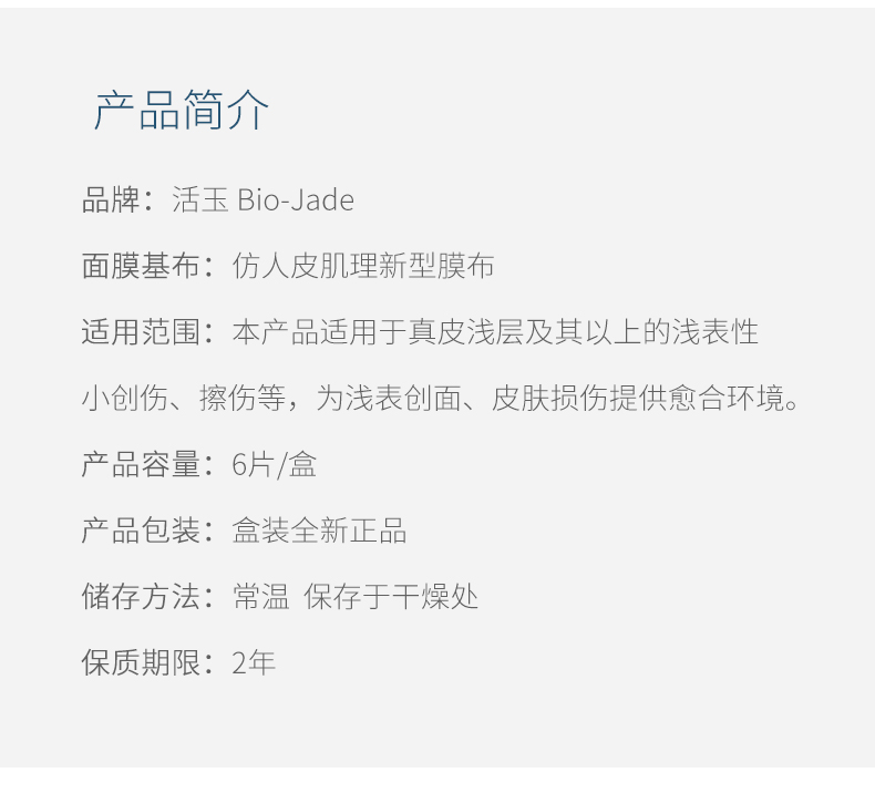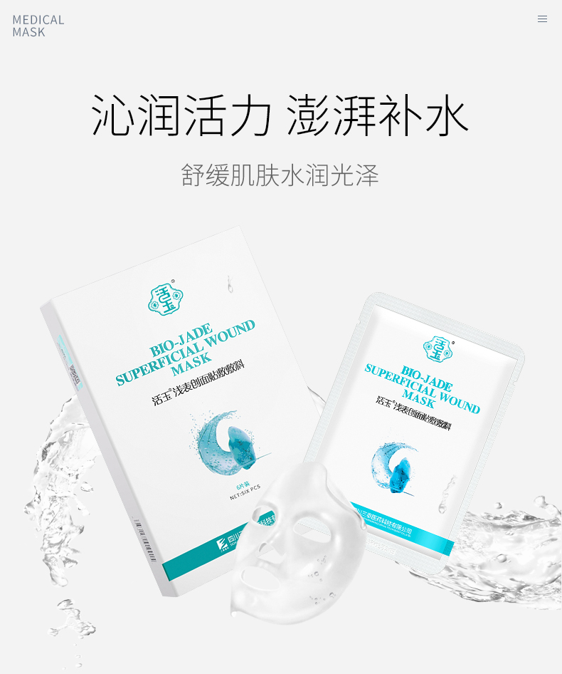 活玉医用面膜 浅表创面帖敷敷料(6片装) 舒缓肌肤