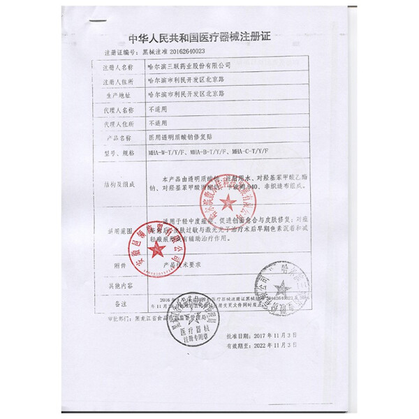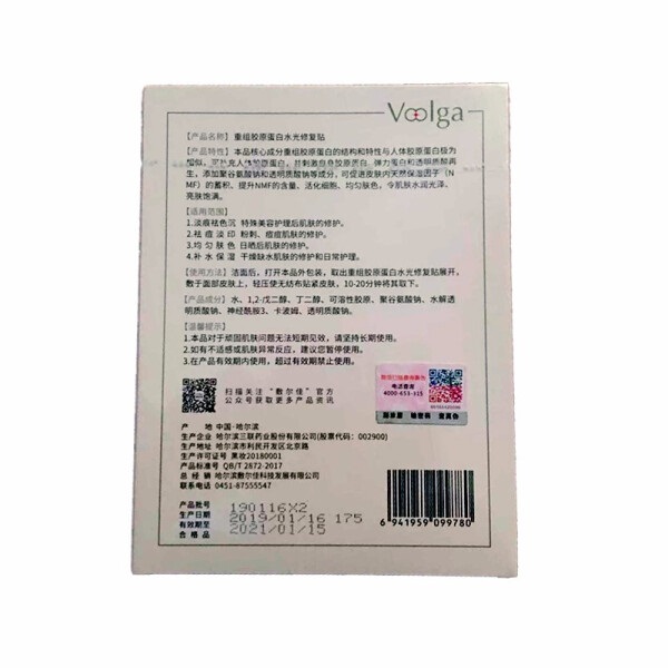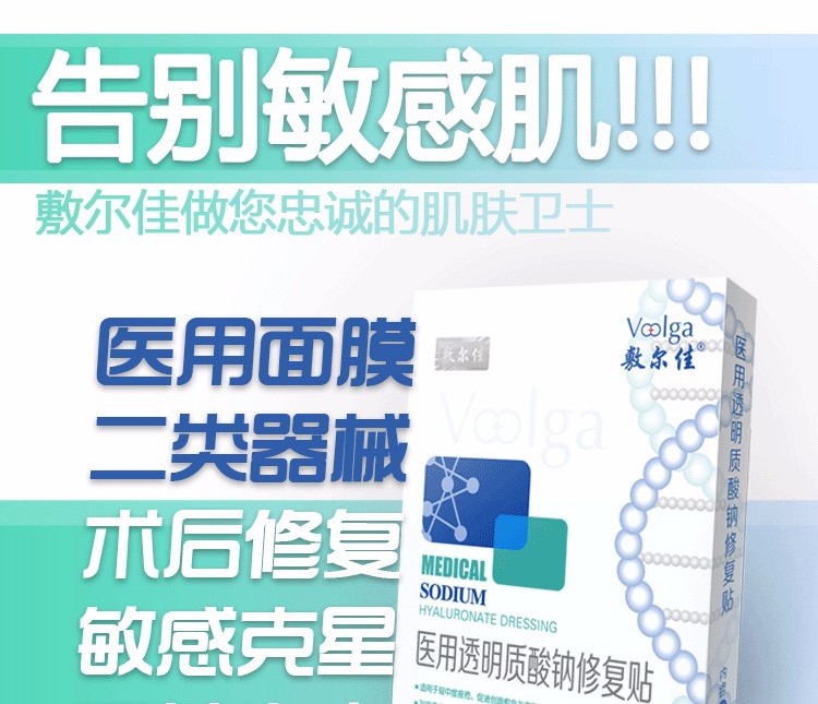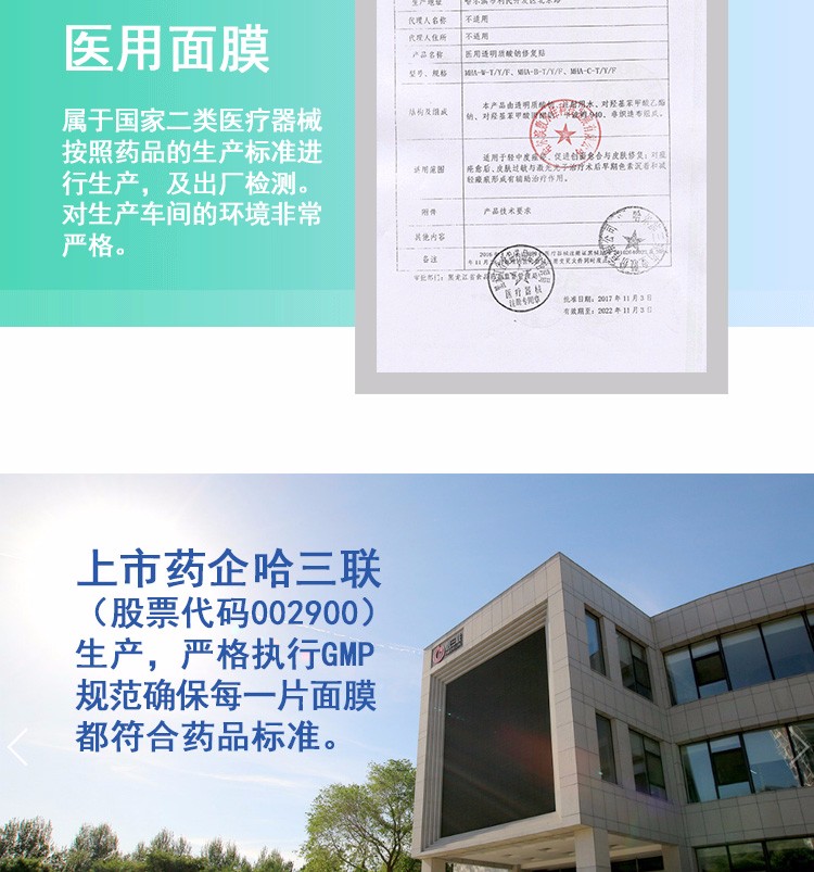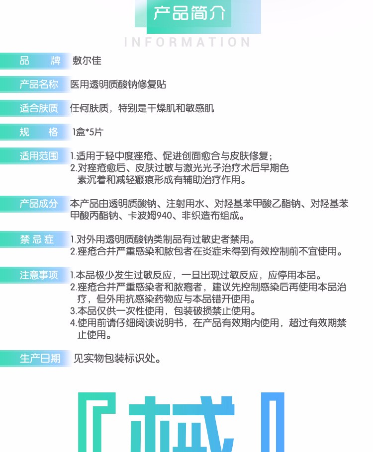 敷尔佳医用面膜 透明质酸钠修复贴 绿膜一盒(5片装)