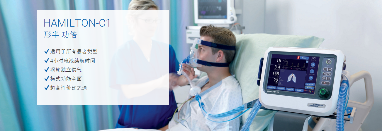 HAMILTON-C1 呼吸机具有占用空间小、可靠性高、简便易用、机动性好和性能高等特点。 因此,它是重症监护室、急诊室、复苏室、中期照护和院内转运中通气病人的理想伴侣。