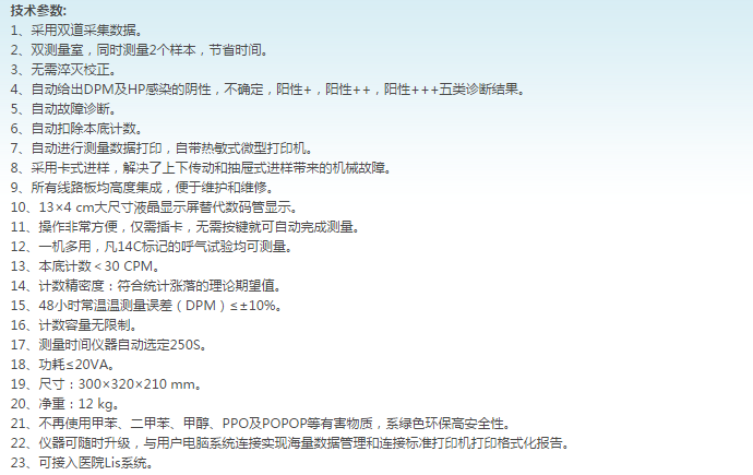 2、采用已获国家的一次性卡式采样装置.环保无污染,是传统液体闪烁计数仪的更新换代产品。