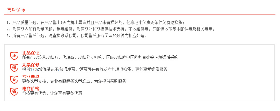 注: 产品质量问题,在产品售出7天内提出异议并且产品未有损坏的,亿家老小负责无条件免费退换货;质保期内如有质量问题,免费维修;质保期外长期提供技术支 持,不收维修费,只酌情收取基本配件费及相关费用;所有产品售后问题,请直接联系我司(7x24小时热线:400-027-9875),我司售后服务团队 30分钟内相应处理。