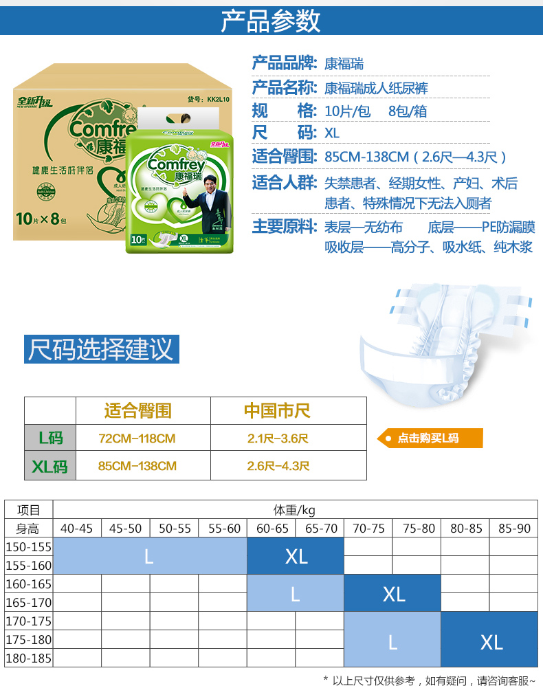 康福瑞 成人纸尿裤 L-XL号箱装80片