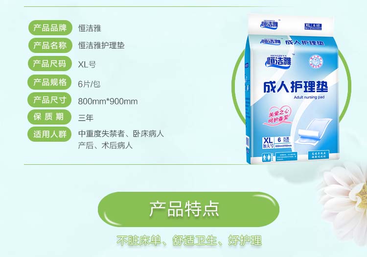 恒洁雅 成人护理垫 XL6片 (800*900mm) 6片*1包