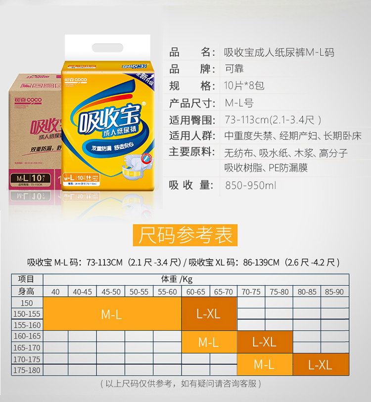 可靠 成人纸尿裤 M-L号10片*8包【73-113cm】