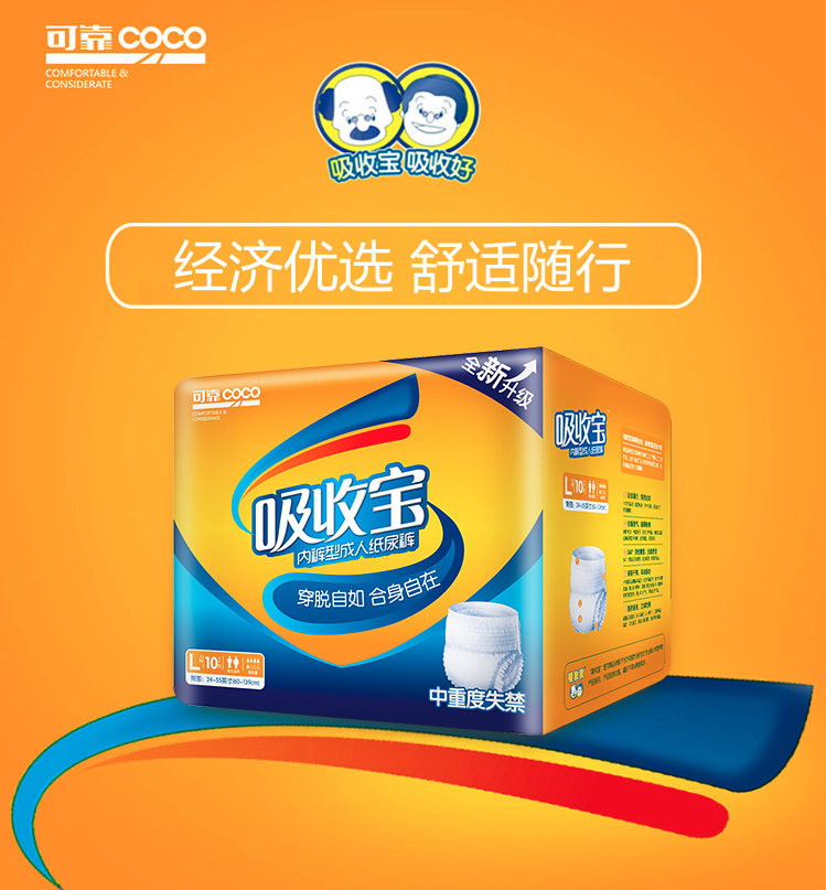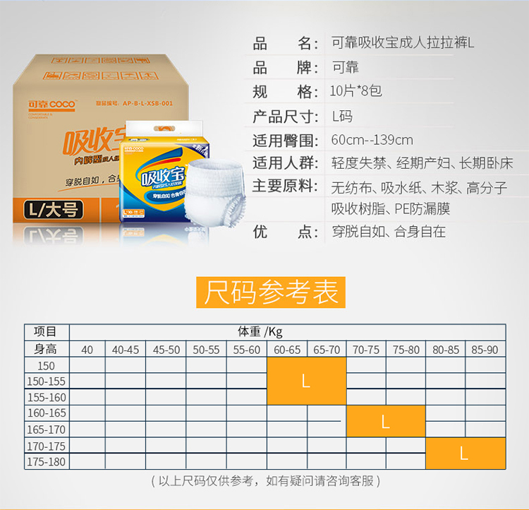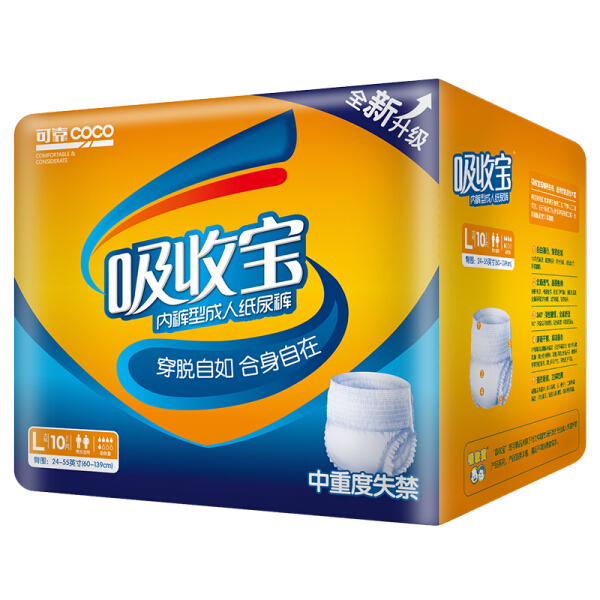 可靠 吸收宝 成人内裤型纸尿裤 L号10片*8包(60-139cm)