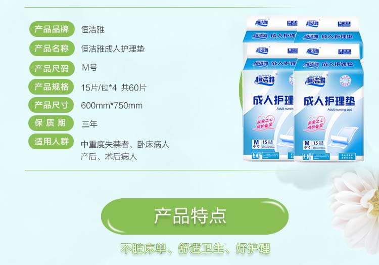 恒洁雅 成人护理垫 M60片 (600*750mm) 15片*4包