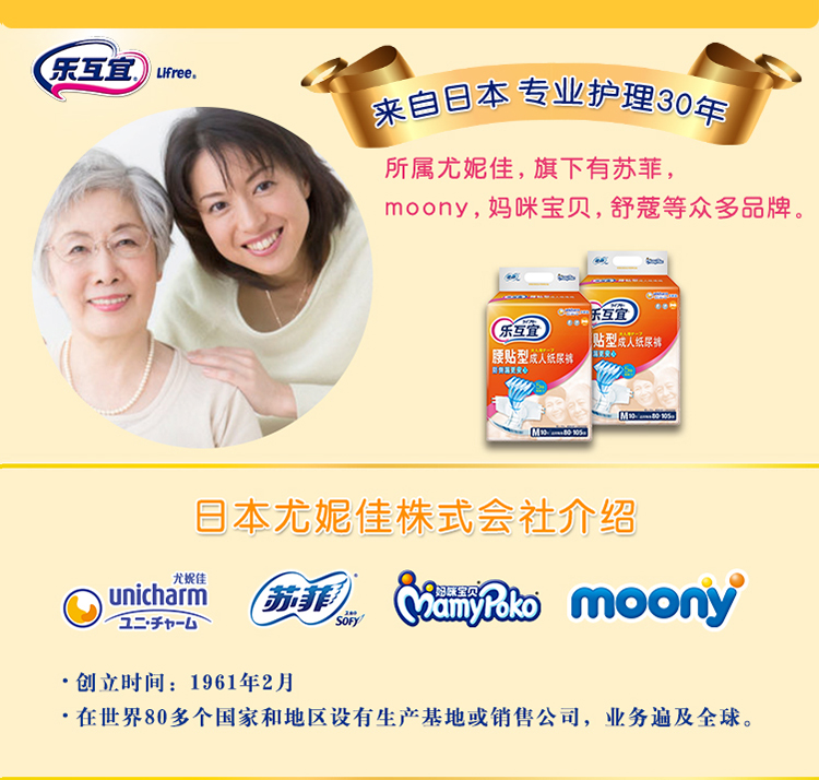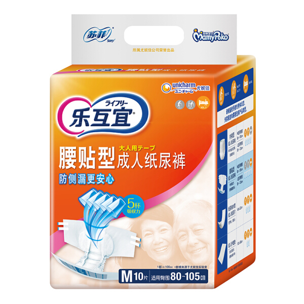 尤妮佳 乐互宜 成人纸尿裤(腰贴型) 中号M60片(箱装)